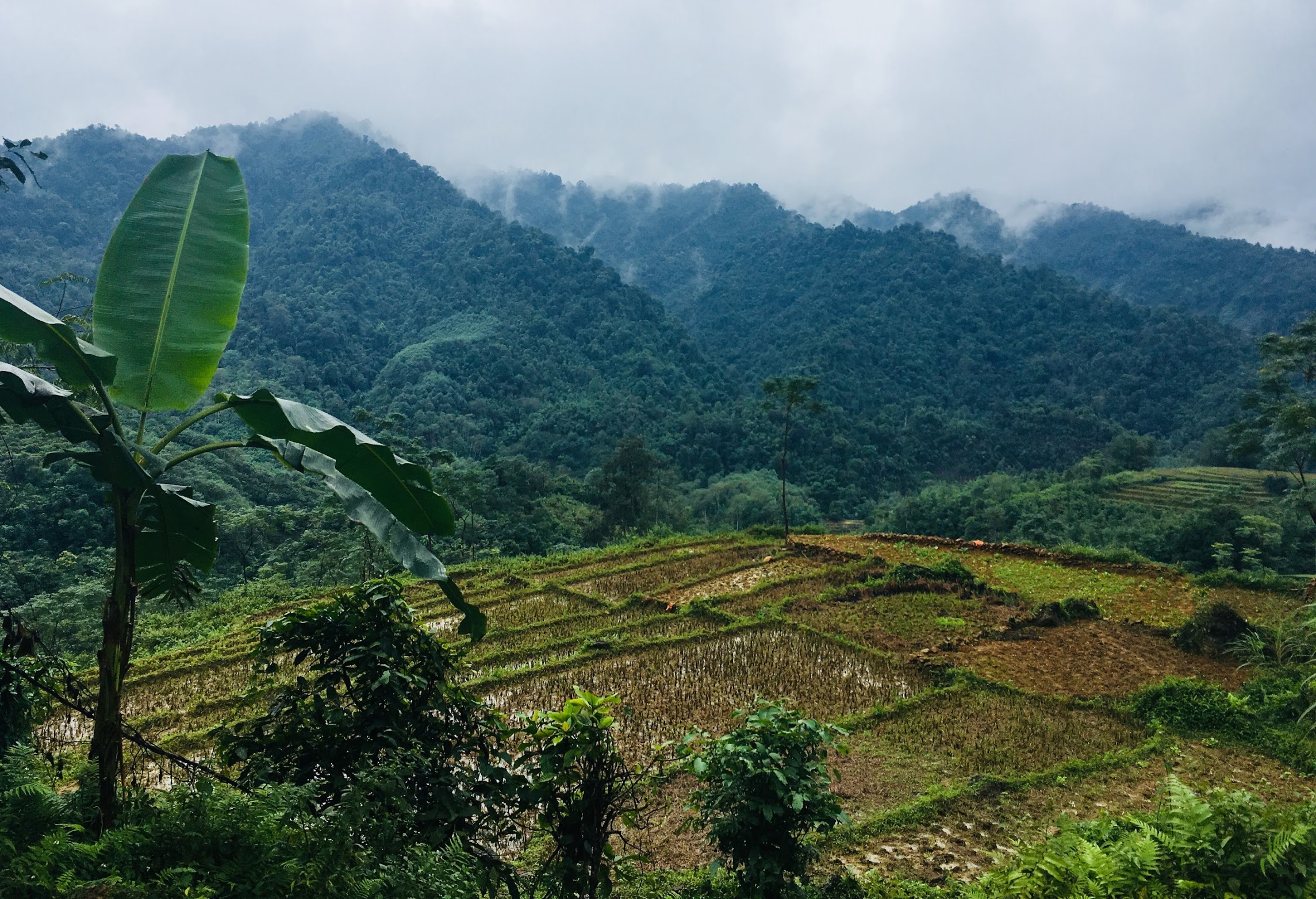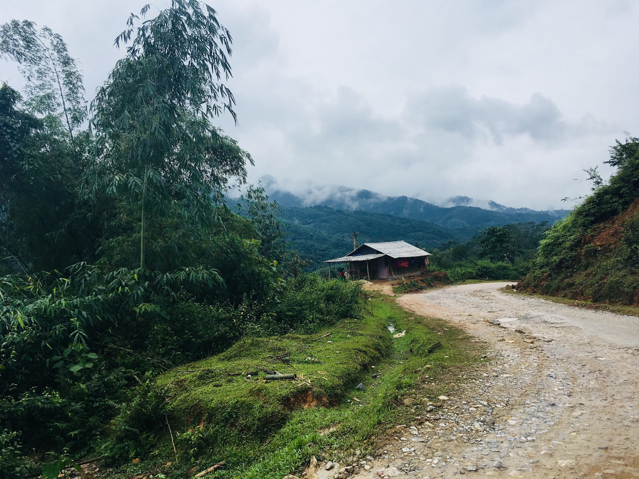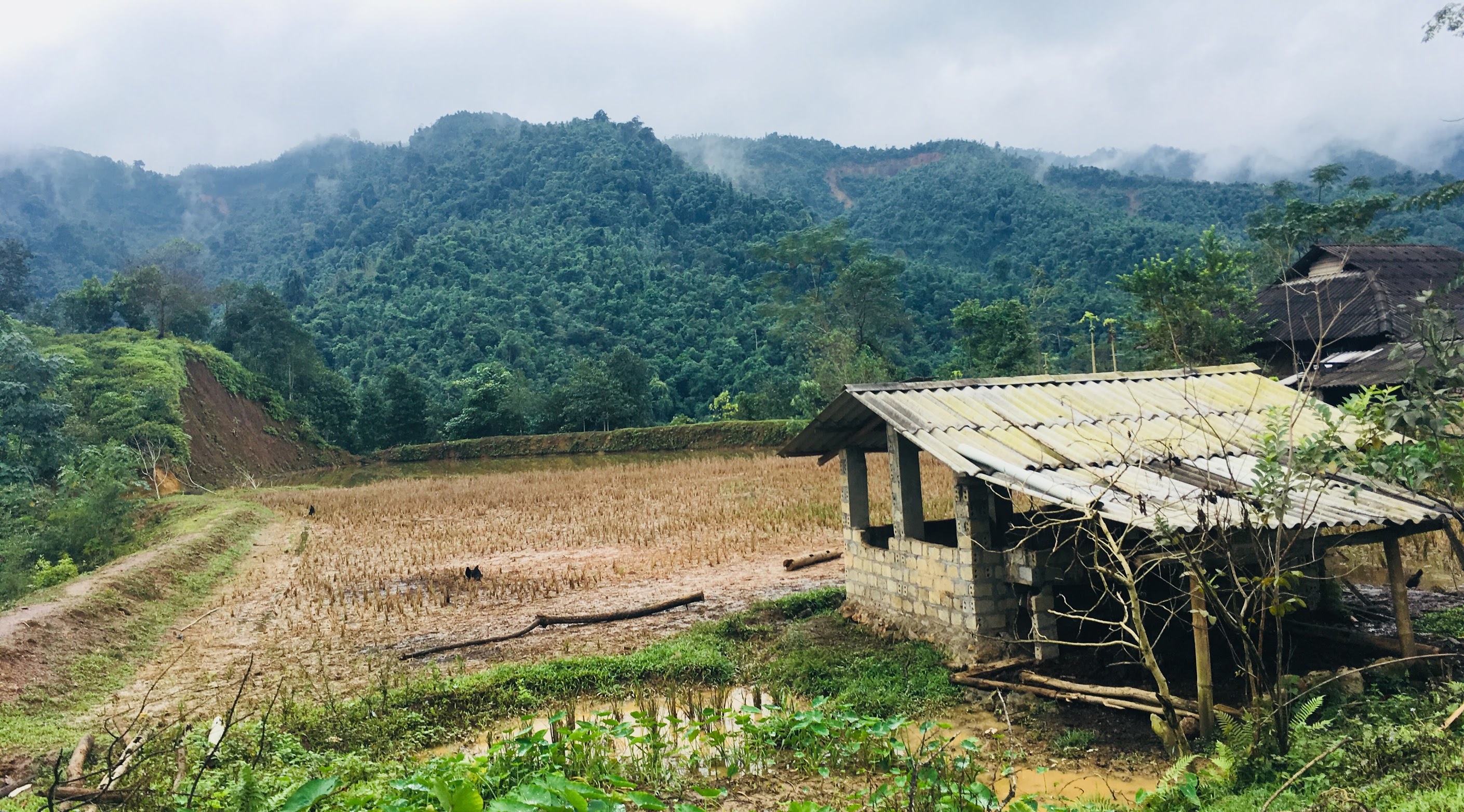 Drumul a fost așa și așa, dar am văzut peisaje foarte frumoase, multe terase de orez, oameni pe marginea drumului care ne făceau cu mâna, copii jucându-se pe ulițe, bivoli, nori și ceață peste munte.