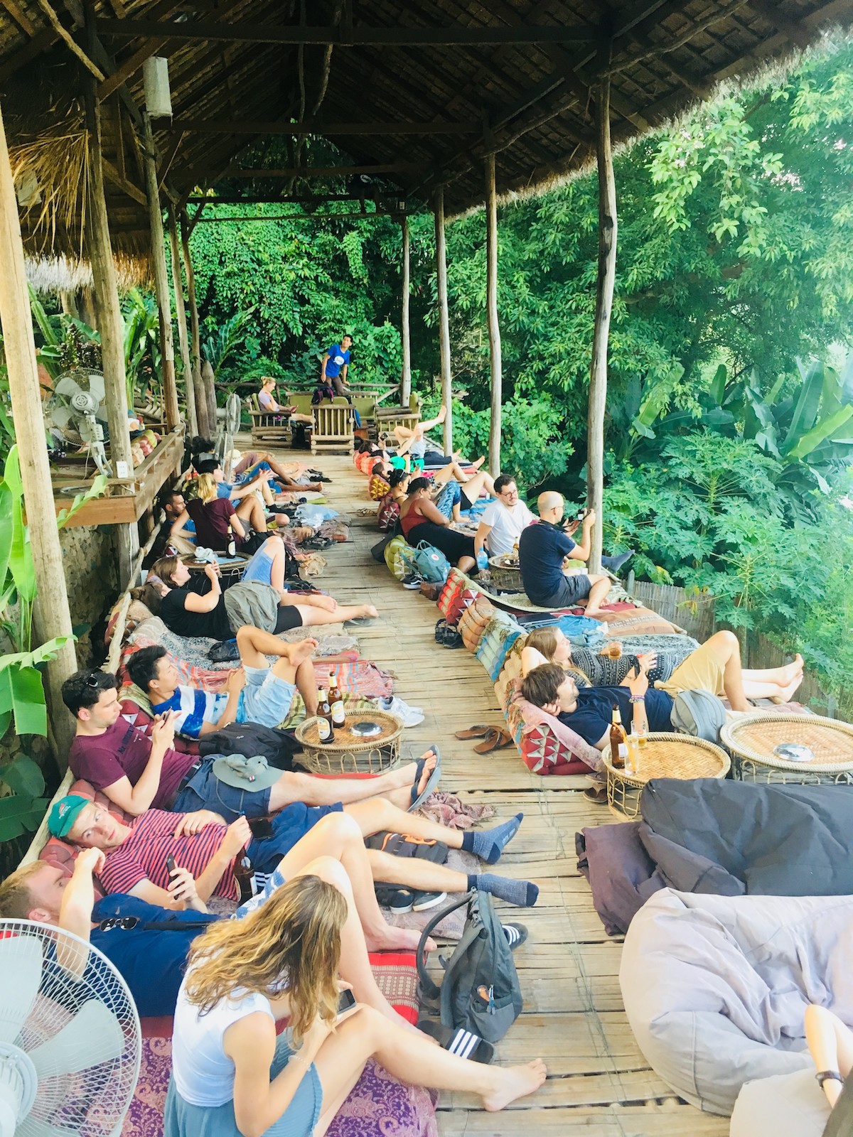- Terasa Utopia este locul unde poți să dormi după-amiază pe o saltea direct pe ponton deasupra râului Nam Khan. În fiecare dimineață sunt clase de yoga, de la 7.30 și deși e greu să te trezești devreme în vacanță, credeți-mă, merită. E o zi altfel, o zi în care poți să simți răcoarea dimineții și să vezi cum se ridică ceața de pe râul care e chiar sub ochii tăi.