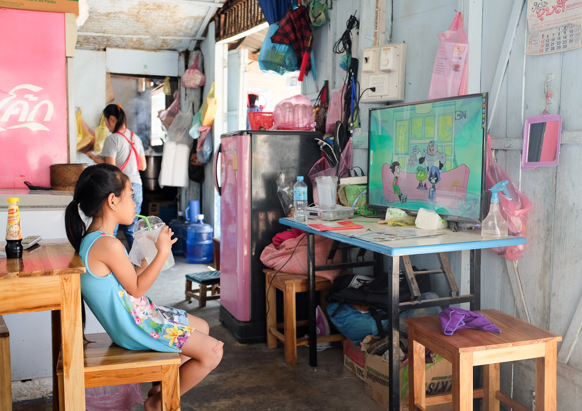 - Big Boss House este o bodegă, o tavernă la un colț de stradă care are o poveste foarte frumoasă. Numele este în laoțiană, nu știm cum să îl traducem, dar am numit-o Big Boss House pentru că persoana care servește este un băiat de 11-12 ani. Noi am mers acolo de 4 ori. Mâncarea este delicioasă și foarte ieftină. Băiatul este singurul care știe cât de cât engleză, are o înfățisare și o abordare foarte serioasă. El le spune celor de la bucătărie ce și cum să facă, tot el aduce și nota de plată. Mai are o surioară care privește desene la un televizor adus acolo. Când nu are comenzi se așează lângă ea și privește și el. În timpul săptămânii este la școală. Am surprins și momentul în care a venit de la școală în uniformă. S-a așezat la masă, a mâncat ceva pe fugă și apoi a revenit la postul lui. Mâncarea este delicioasă, oamenii ospitalieri, iar povestea lor numai bună de dat mai departe, motiv pentru care ocupă și un loc special în acest articol. Îi găsiți în intersecția aceasta, lângă Villa Kiengkham.