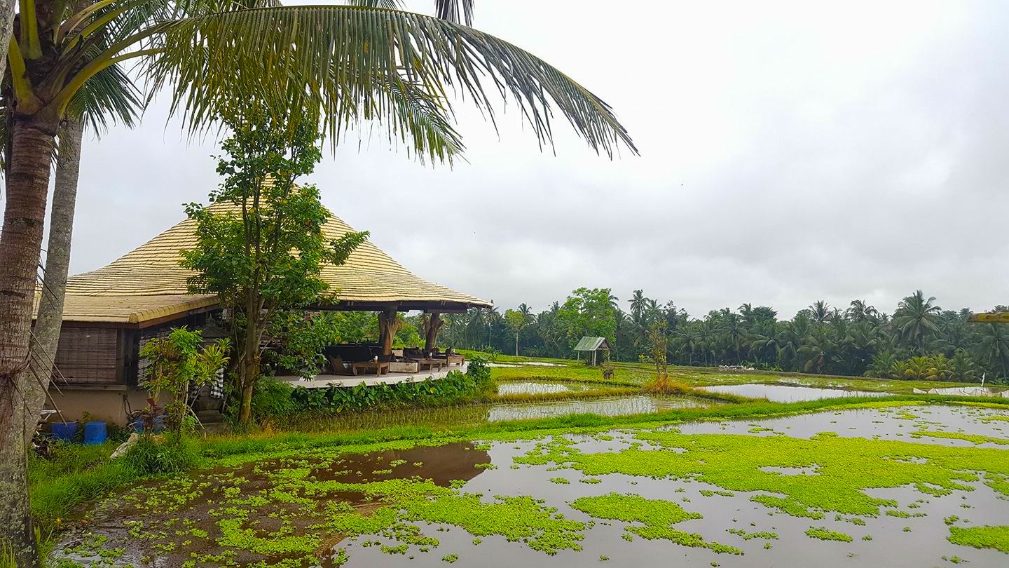 Așadar, am ajuns la cazarea din orezărie. Camera arată de vis, iar peretele din fața patului e din sticlă, în față e câmpul de orez, copacii înalți de nucă de cocos și atât.