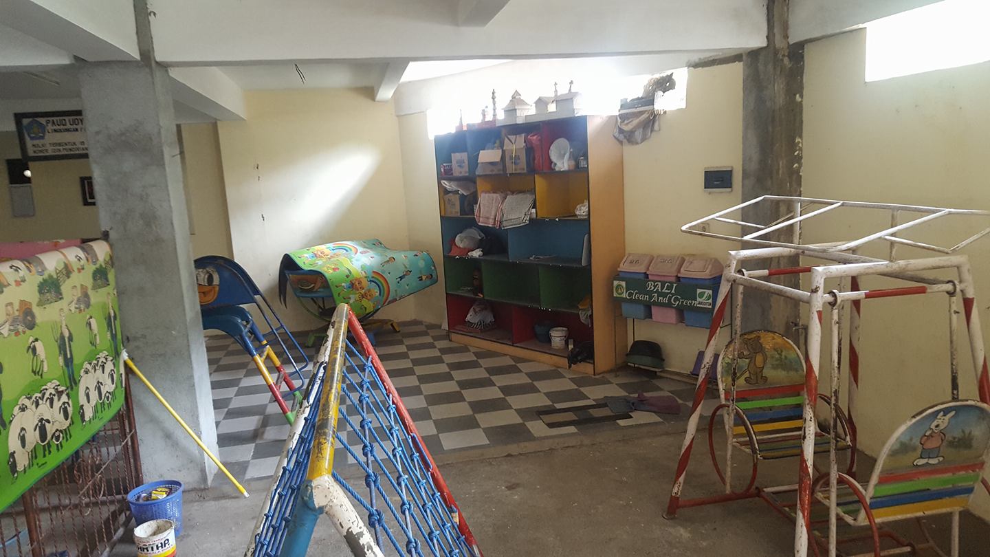 Zilele trecute ne-am mutat în centrul Ubudului, pe o străduță micuță, puțin mai retrasă. Am zis că e mai bine așa, ca să avem liniște. Dar ne-am înșelat. Dimineață ne-am trezit în cântece de copii și țipete vesele. Ne-am gândit că sigur e ceva grădiniță pe lângă. Când am ieșit din curtea cazarii, am văzut în fața doar o parcare subterană. Ne-am oprit să scotocim ceva prin rucsac, privesc spre parcare și un cap mic răsare de deasupra unei mașini. Mă uit mai bine și văd ceva pereți colorați. Mă obișnuisem așa tare cu gălăgia că nici nu am realizat că vine din direcția aceea. Îi fac cu mâna copilului, îmi face și el înapoi, după care dispare… în jos. El stătea de fapt pe un topogan, de aceea apărea mare pe deasupra mașinii.