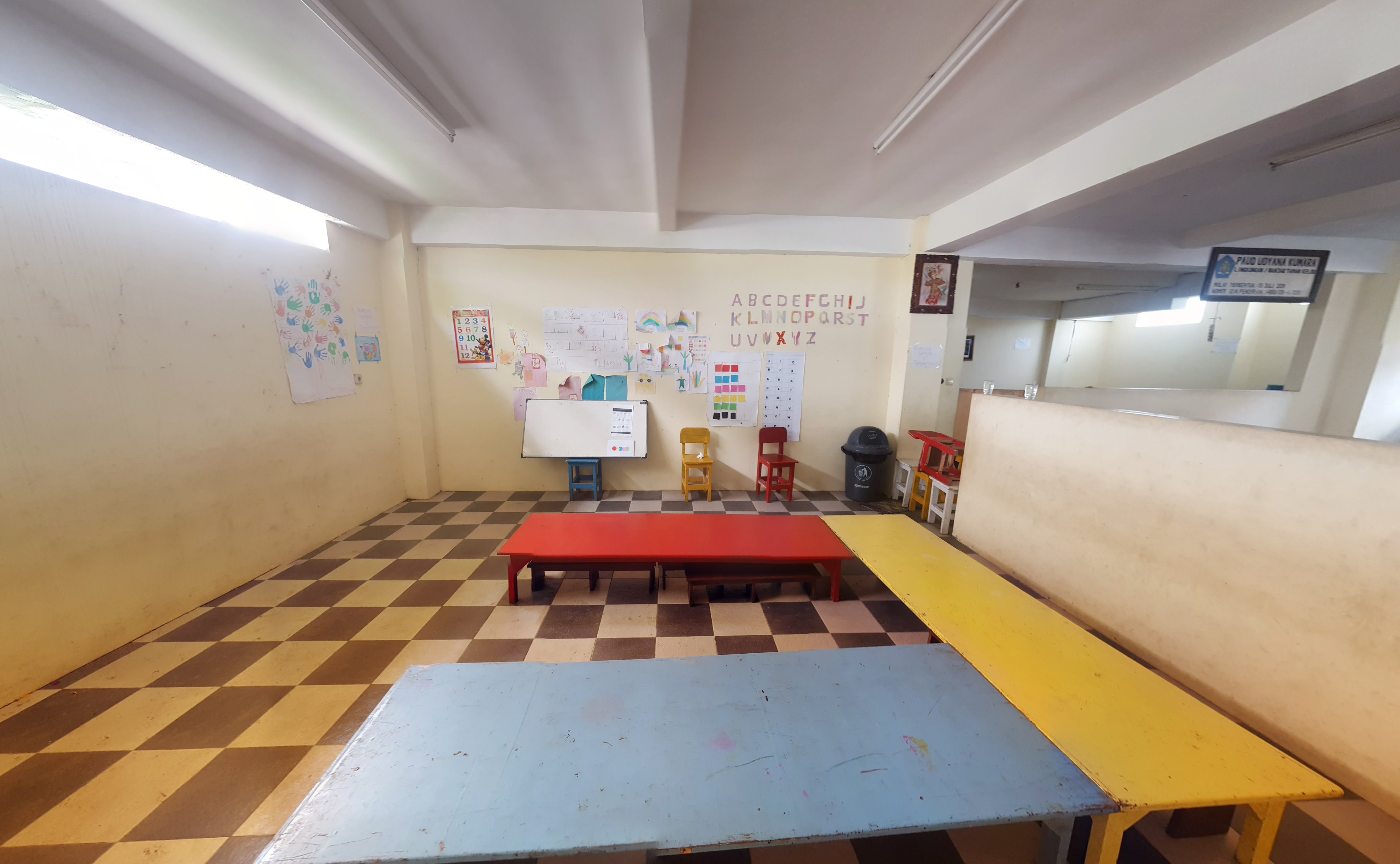Am tras cu ochiul și da, era o grădiniță plină de voci vesele. Ne-am întors după prânz și nu mai erau acolo. Ne-am oprit să facem câteva poze și ne-am întâlnit cu un localnic care își spăla mașina în parcare. Ne-a povestit că e un preschool, adică o grupă pregătitoare, nu pentru școală, ci pentru grădiniță, un fel de creșă. Acolo vin copiii să învețe cântecele și să se joace cu ceilalți. Deci acolo aleargă dimineața scuterele cu ei adormiți sau serioși în uniformele lor albastre sau galbene. Știți, aici, în funcție de zilele săptămânii, copiii poartă uniforme de culori diferite.