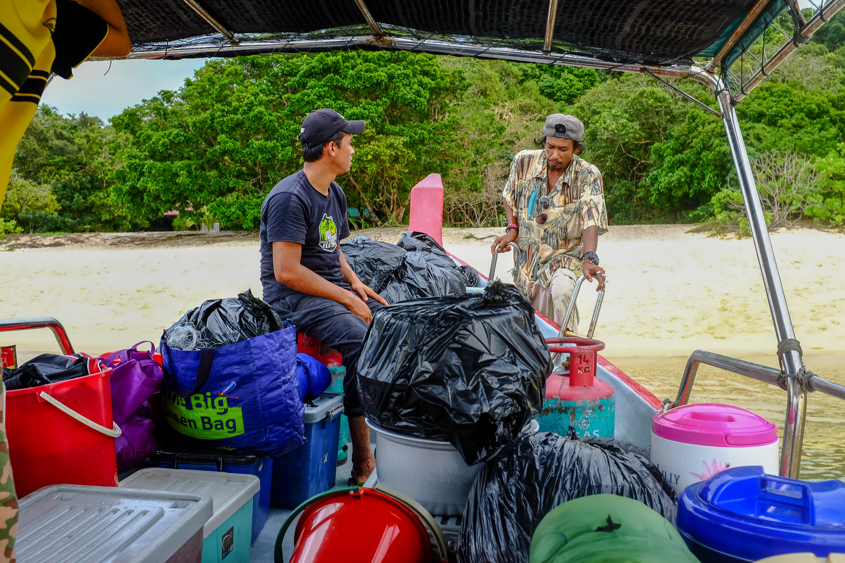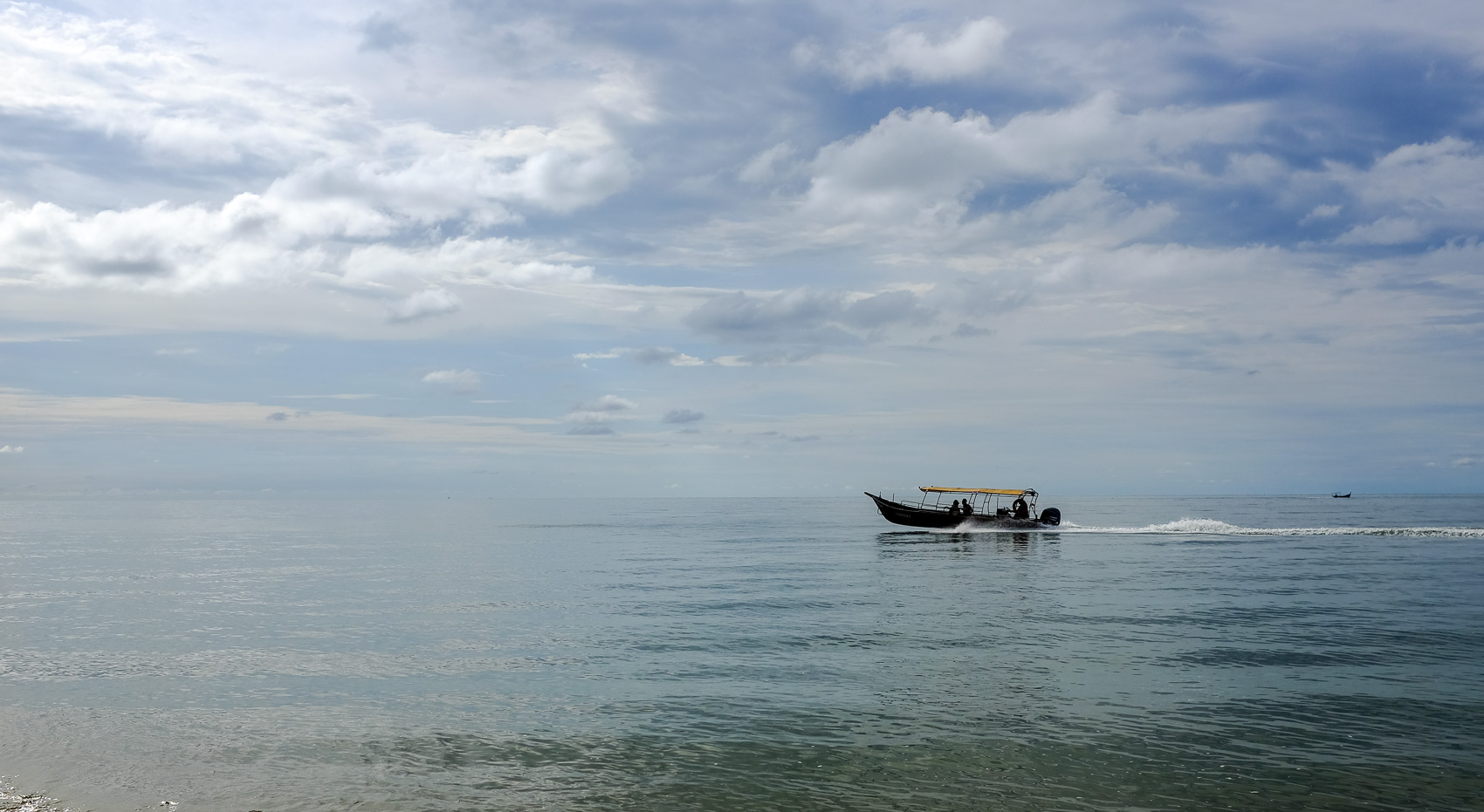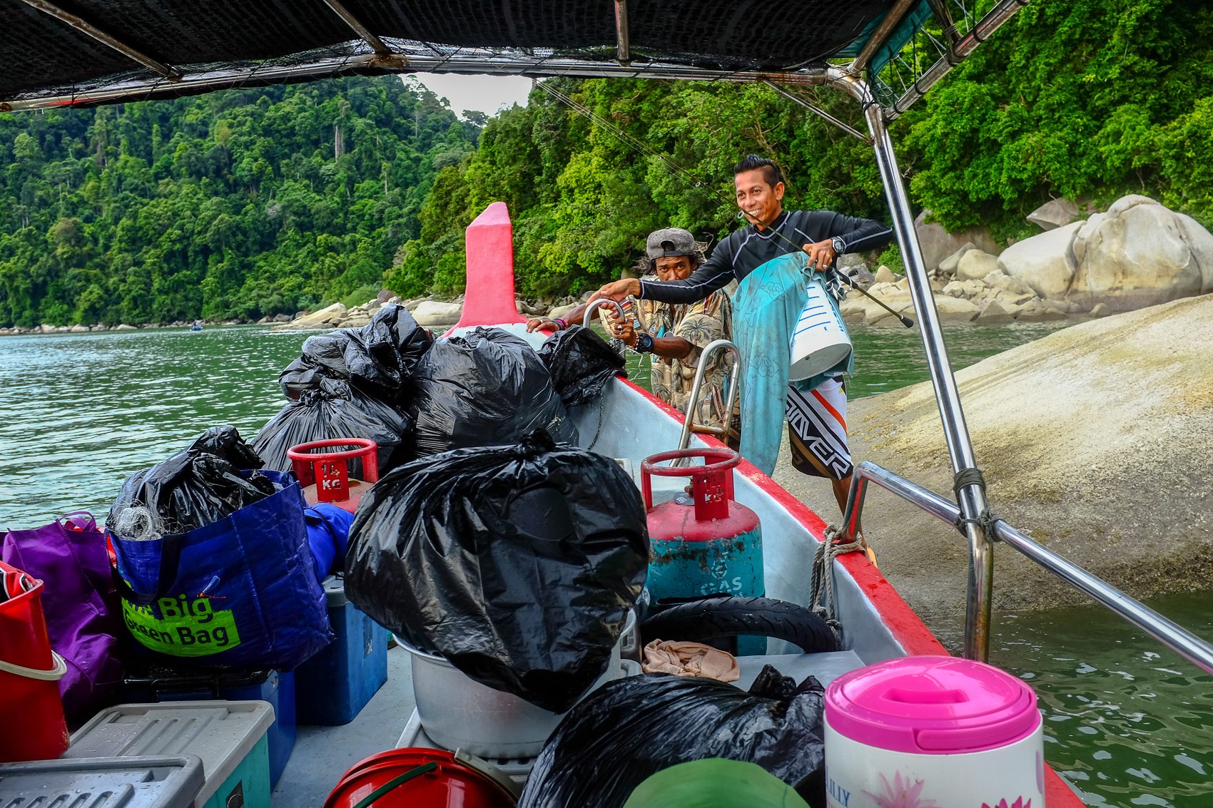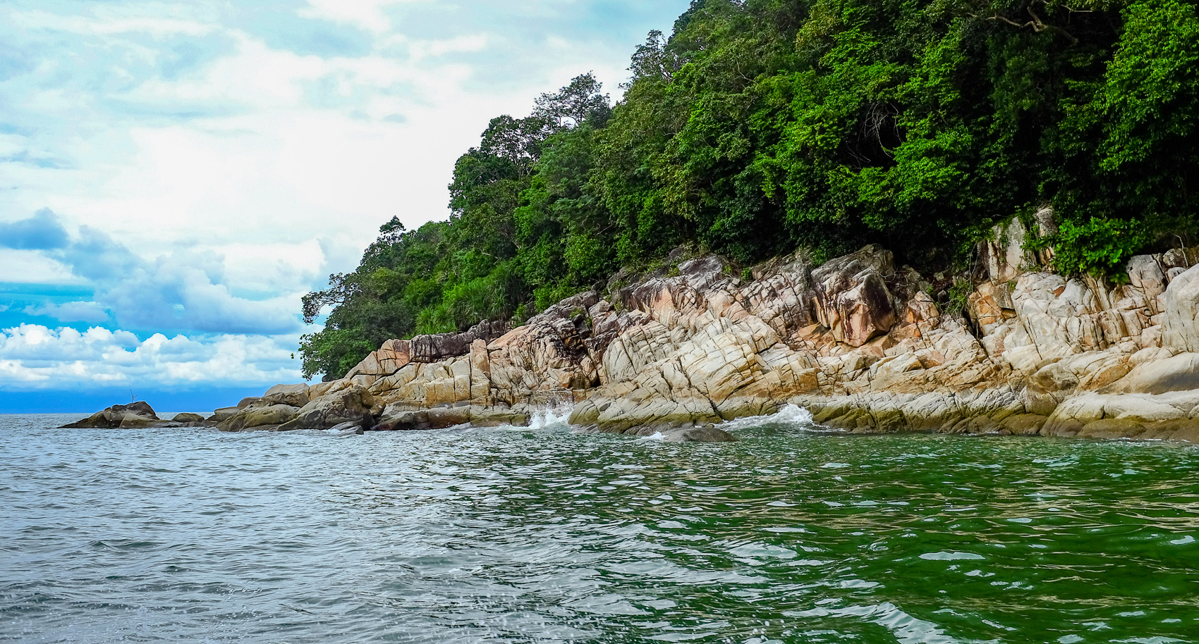 A venit totuși o barcă cu patru localnici care transportau ceva vesele și altele pentru gătit. Se pare că fusese un grup care campase pe plajă cu o noapte înainte și gătiseră pentru ei. Am plătit echivalentul a 60 lei pentru cam 30 de minute de plimbare cu barca până la intrarea în parc. De fiecare dată când vedeau ceva pe stânci, maimuțe, păsări sau când ne arătau formele stâncilor, opreau motorul și ne apropiam încet pentru a face poze cât mai de aproape. Au fost și un fel de ghizi pentru noi.