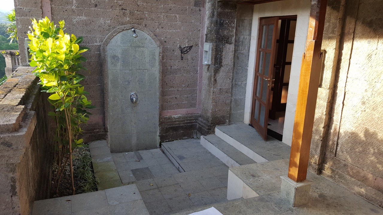 3. Am ajuns și la cazarea unde stăm noi acum și unde am stat cel mai mult, Uma Taman House. A doua oară când am venit în Bali am stat cam 3 săptămâni aici, iar acum aproape toată vacanța ne-o petrecem la ei. Dacă stați mai mult, oriunde puteți negocia un preț mai bun. Noi stăm aici cu 54 lei/noapte, cu mic dejun inclus. Ne place foarte mult pentru că este curat, camerele sunt mari și spațioase, iar proprietarii sunt foarte faini. În fiecare zi se face curățenie, iar o dată la 3 zile se schimbă tot. Dezavantajele sunt că vis-a-vis e un fel de centru al comunității lor, iar dacă vă sunteți aici prin martie, la acest centru se adună ei pentru a sărbători anul nou balinez și au tot felul de întâlniri și ceremonii până după miezul nopții. Tot aici este și o grădiniță. Desprea anul nou balinez am scris aici, iar despre grădiniță, aici. Deși este în centru, faceți cam 10 minute pe jos până la Ubud Palace și cam 40 de minute până la Monkey Forest. Până la cafeneaua care nouă ne-a cam devenit birou, Kafe, noi facem cam 30 de minute, dar ne place asta pentru că e mișcarea noastră de zi cu zi. Revenind la cazare, noi aici ne odihnim super bine, eu cred că de la fântana arteziană pe care o au în curte. Probabil acel auz de apă care curge lin ne liniștește.