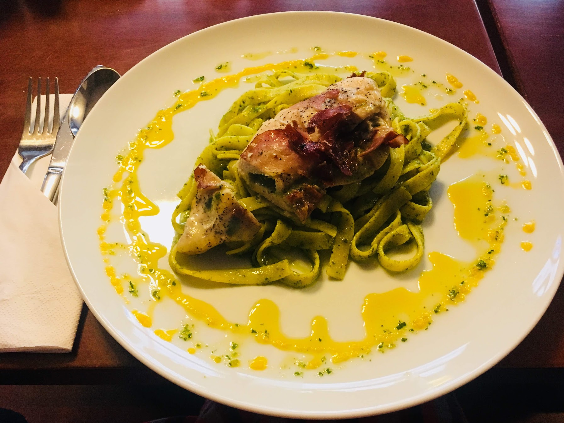 Restaurant cu specific italienesc, care are și o băcănie. Prietenii cu care am fost ne-au spus că acolo e cea mai bună pizza din oraș. Noi nu știm dacă e cea mai bună, că nu am încercat prea multe, dar într-adevăr, pizza de acolo este delicioasă… atât de delicioasă, încât nici am uitat să facem poze. Am găsit însă o imagine pe acest site și așa arată pizza lor: