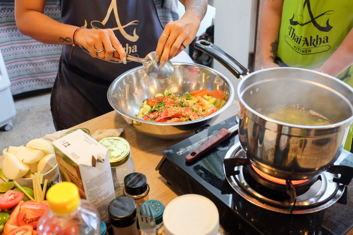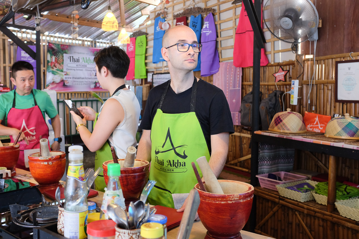 So in Chiang Mai, we booked a class at Thai Akha School for which we paid $ 27 / person. The course took place between 9 and 15.