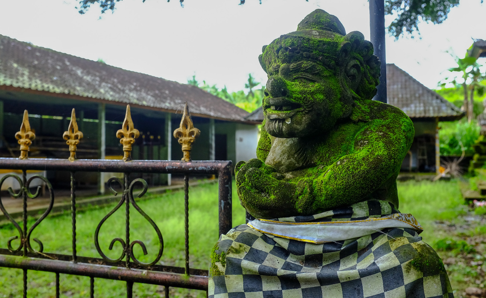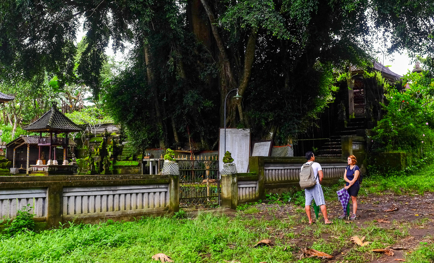 From the rice fields, we went to an ancient village temple, that it is very well hidden in the vegetation. Here Gus tells us about Hinduism, their religion. Indonesia is a Muslim country, but in Bali the main religion is Hinduism. The Hindu beliefs are very well passed down from one generation to another. They believe there is a god, without form or face, that there it is something above us, a divinity. Besides this belief, they are in contact with nature and they believe there are energies in the Univers for everything. Their statues represent the image they were able to give to these energies. Several times a day offerings are given and people pray and thank the universe.