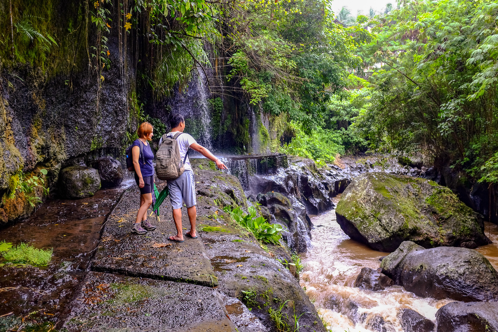 The first place we visited, located 10 minutes from the hotel is a shared bath place. In Bali, some people still have the custom of going in the morning and evening to take a bath together. Men and women of all ages gathered to make a bath naked by the river. It is a tradition that is still preserved today. As strange as we may see it, it is absolutely normal to them, is a tradition that lived through time. Many of those who come here have their own bathrooms at home, but they continue to frequent the common bath for socializing with the others. The places are hidden in the jungle and away from the eyes of the tourists. However, Gus tells us that we can also take part, the only conditions being to not take pictures and take the bath naked with them. Now the river is dirty because of the rainy season, so people use the spring water from the pipes.